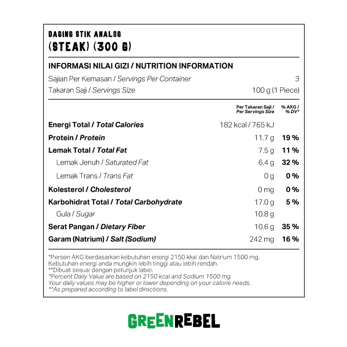 Serat Pangan/Dietary Fiber 10.6 g (35%)