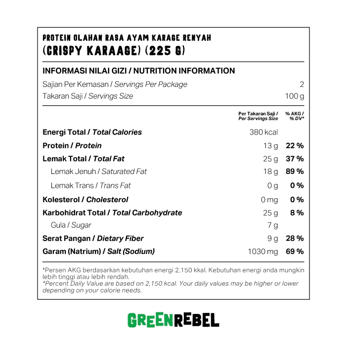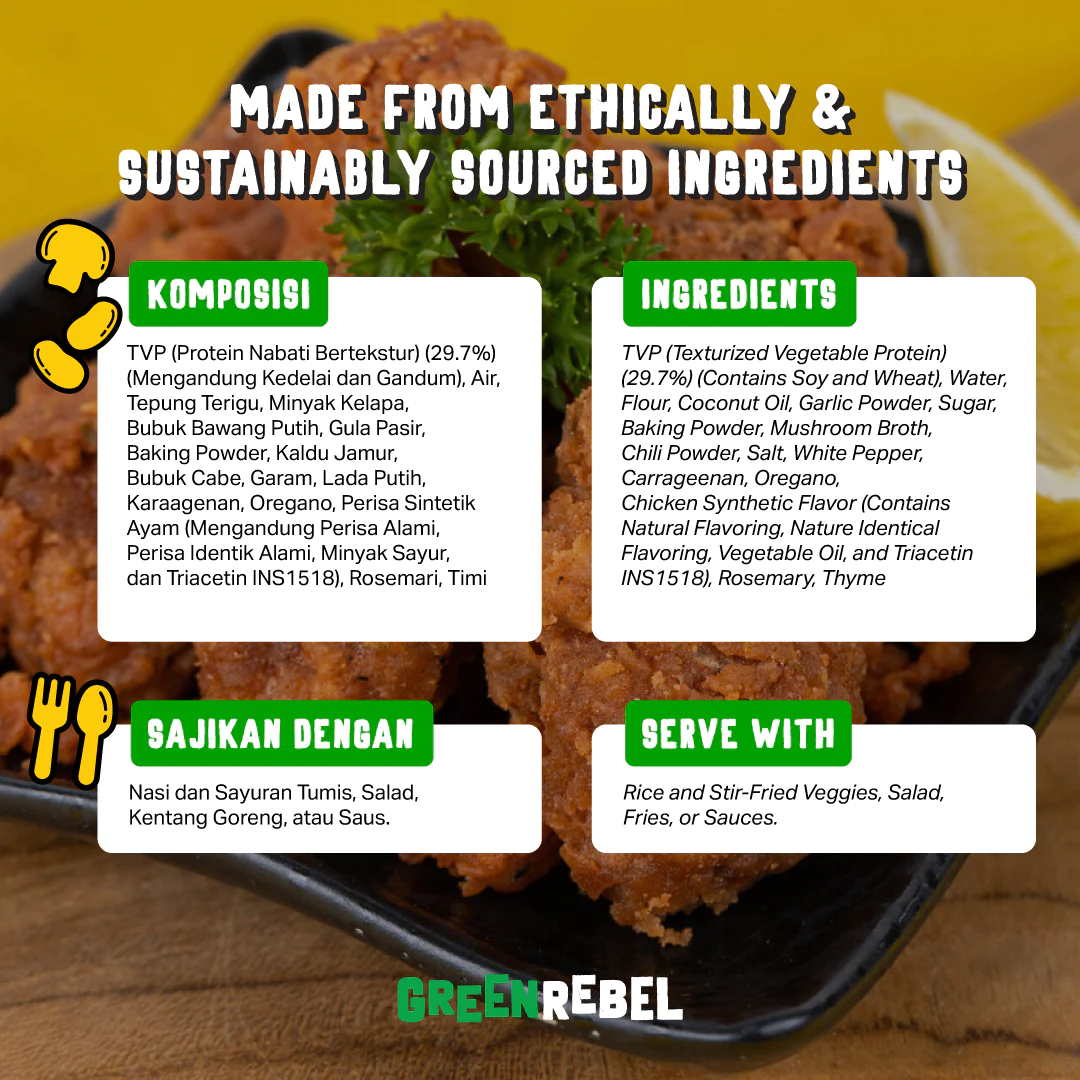 Green Rebel Chick'n Karaage is made with 100% natural ingredients from plants to create a crispy karaage experience for you. We promise it's finger licking delicious!